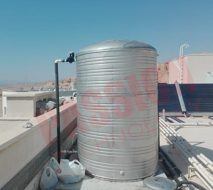 5. Água quente seria bombeada para o tanque de armazenamento e o loop novamente ser bombeado com água fria do fundo do tanque de armazenamento